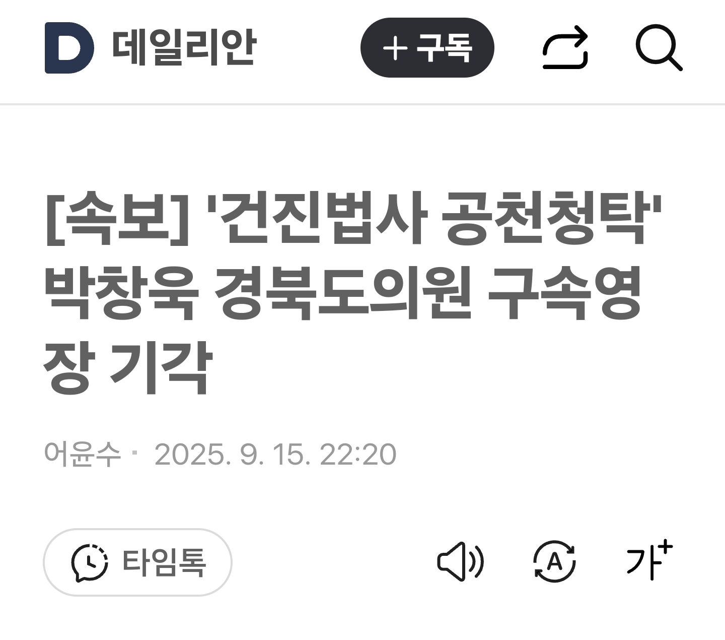 | 건진법사 공천청탁' 박창욱 경북도의원 구속영장 기각 (1) | 2025.09.15 |