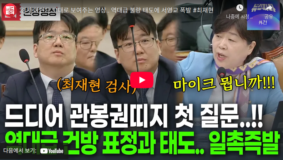 | 관봉권 띠지 최재현 검사 , 역대급 불량 태도에 서영교 폭발 (0) | 2025.09.22 |