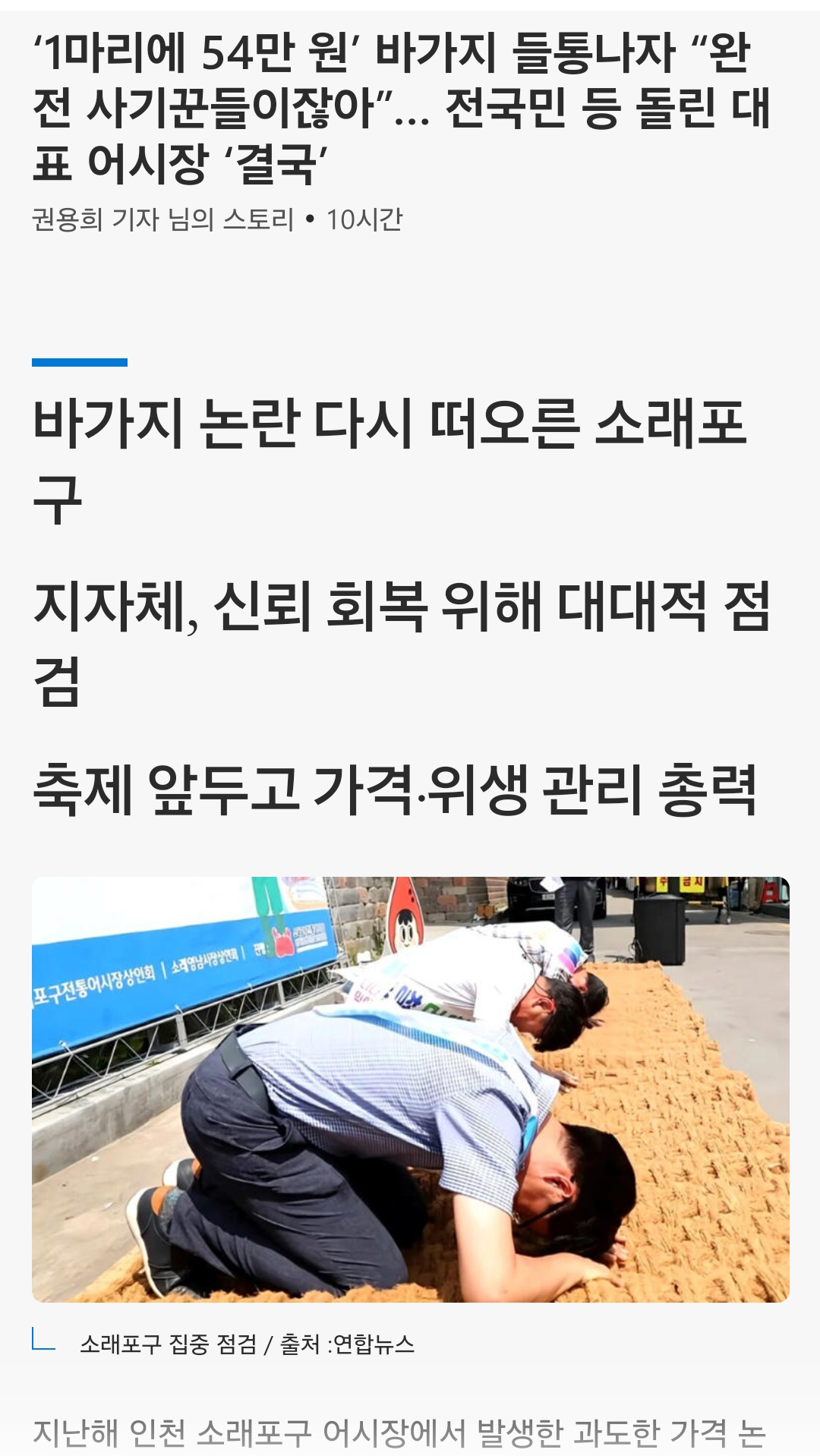 바가지 논란 다시 떠오른 소래포구지자체, 신뢰 회복 위해 대대적 점검축제 앞두고 가격·위생 관리 총력 지난해 인천 소래포구 어시장에서 발생한 과도한 ... Read more