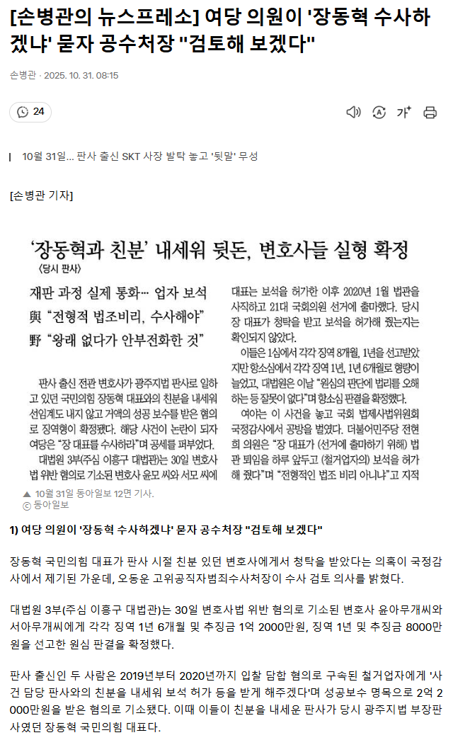 | [속보] 법원 "성남도개공, 재산상 손해…유동규, 업무상배임 인정" (0) | 2025.10.31 |