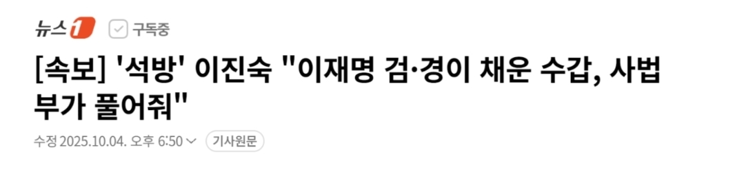 | 석방' 이진숙 "이재명 검경이 채운 수갑, 사법부가 풀어줘", "대구시장" 현실화 될까?, 진보도 보수도 지지하는 상황 (0) | 2025.10.04 |
