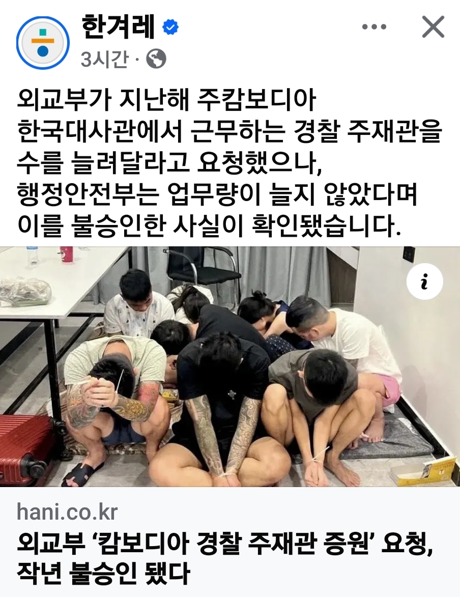 | 캄보디아 경찰주재관 증원요청 행안부가 묵살 (0) | 2025.10.14 |