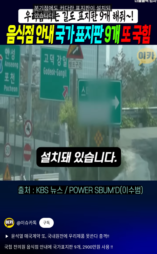 국힘 전의원 음식점 안내에 국가표지판 9개, 2900만원 사용 !! News2025. 10. 14. 18:44