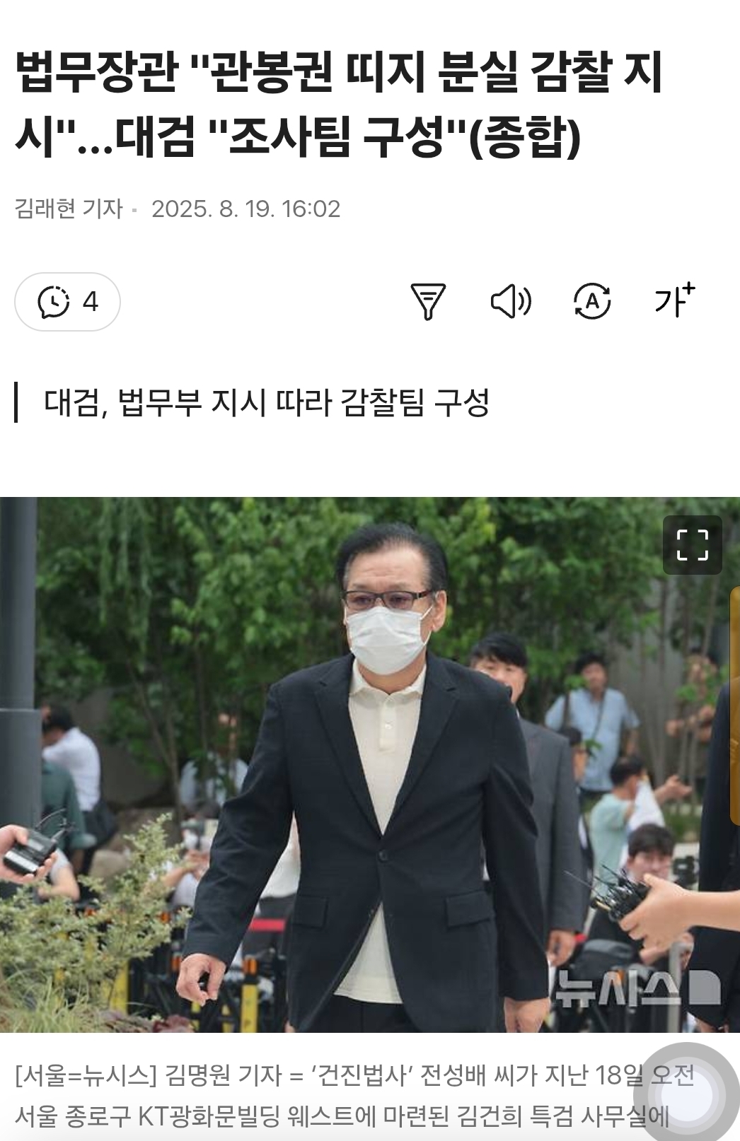 [서울=뉴시스]김래현 박선정 기자 = 정성호 법무부 장관이 19일 관봉권 추적 단서를 분실한 서울남부지검에 관한 감찰 등 진상 파악을 위한 조치를 취하라고 지시했다. 대검찰청은 장관 지시 후