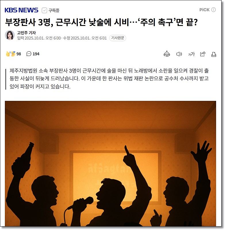 희대의 쓰레기 법원 부장판사 3명 근무 시간에 술판‥노래방에 경찰까지 출동