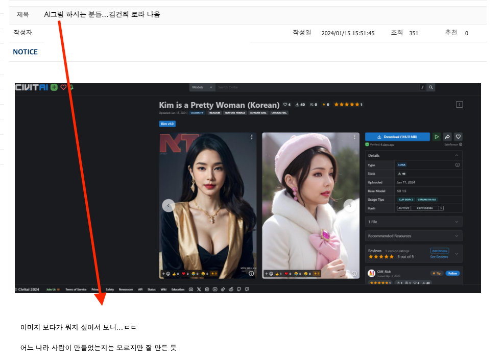 외국에 서버를 둔 AI 모델 서버에 외국인이 모델링을 하여 공개하였는데 아무리 그래도 그렇지 이건 너무나 심하다.